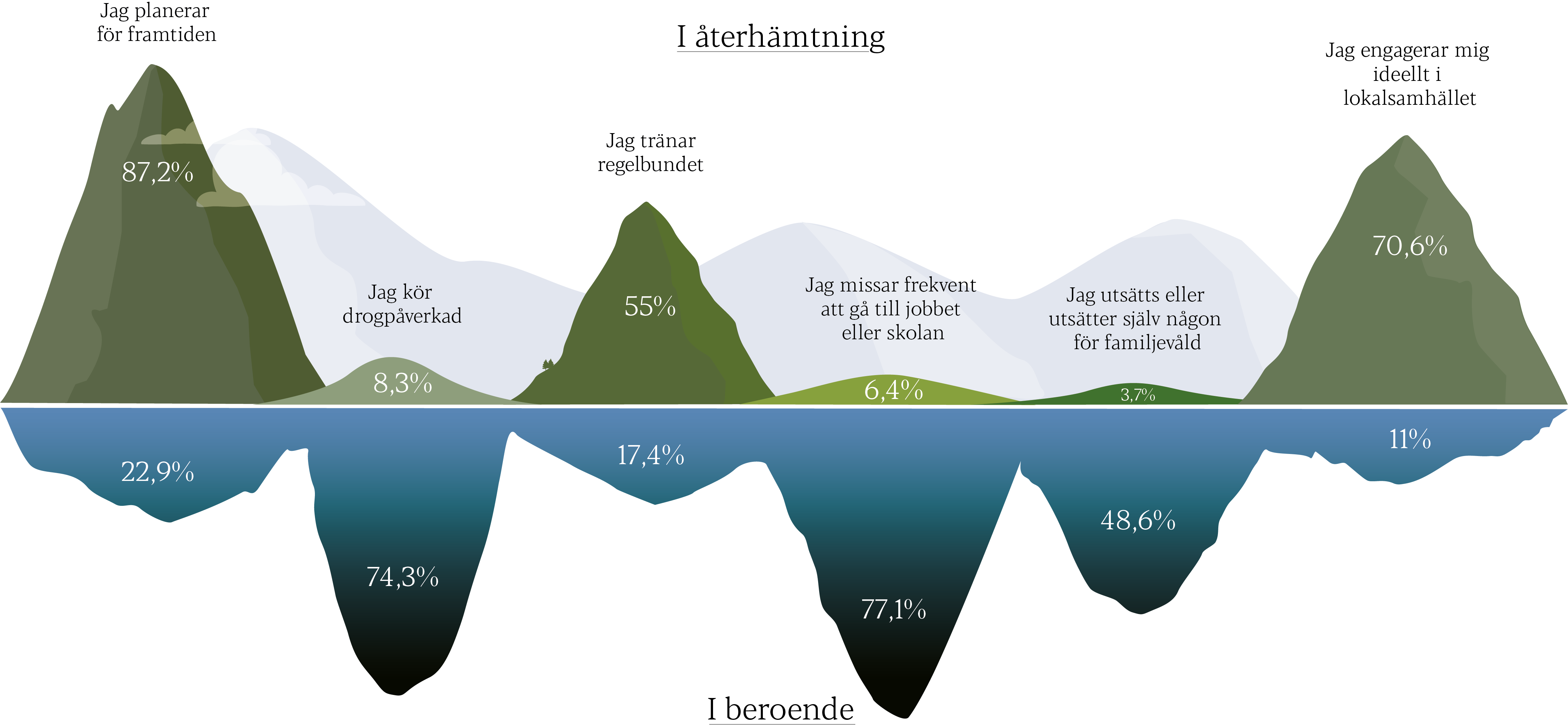 Studierna visar på de vinster som följer med återhämtning och hur livet kan förändras när stöd och möjligheter ges att ta sig ur ett beroende. Vinsterna handlar inte bara om att vara drogfri, utan också om bättre hälsa, en mer stabil vardag, starkare relationer till barn, familj och vänner och en större känsla av gemenskap.